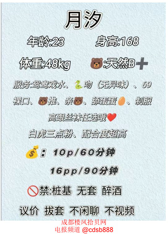 龙湖成都金楠天街B0661月汐,23岁的新疆维吾尔族妹妹,人照9分,胸B+且挺,乳晕小,乳头粉,小蛮腰,有腹肌,腰臀比明显,屁股有肉,人工白虎,水多有包裹感,可舌吻,1000元一次