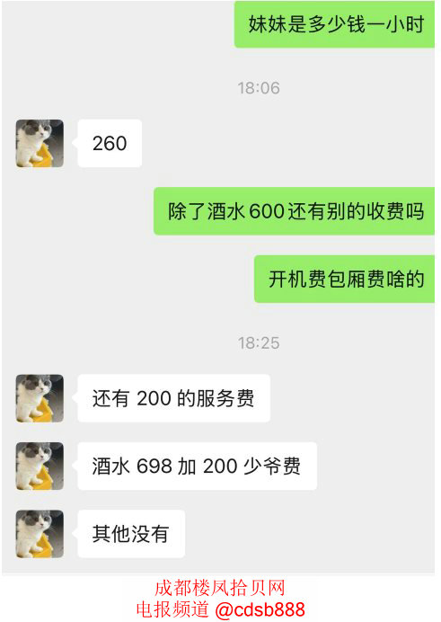 发现武侯区红牌楼附近一个小时场,酒水好像 600 畅饮不限人数不限时间。尺度还可以。很多可以夺,去了两次都在包厢夺了。有的还可以直接加 100 加 300 玩。感觉还可以,质量环境不比商 K 差。