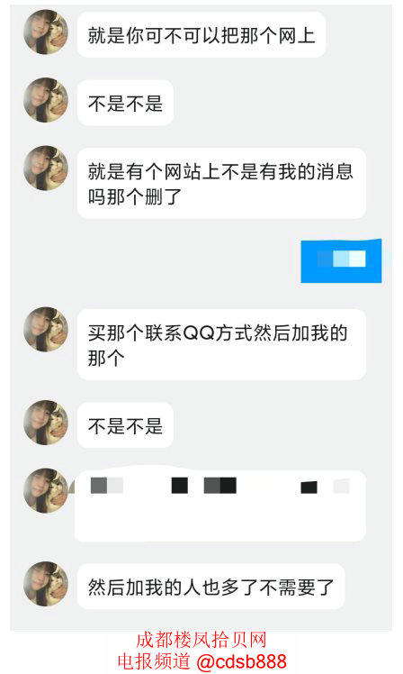 管理员2025-11-18 19:48:13注:此女上岸不做了,并委托此资源的首发者“aayy”转达自己希望删除自己在我们网站上的信息的愿意,首发者“aayy”在此帖下回帖表示删除其在郫都区的大概位置、露脸照和联系方式中的QQ号即可,管理员同意了。
