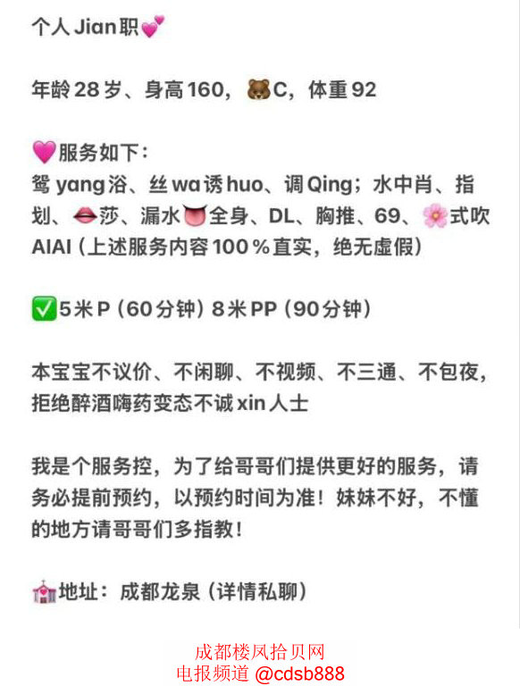 谁有龙泉小妖精的最新联系方式?之前去过一次,现在还想去,可是她的电报号炸了。(管理员注:然后咱们频道的热心狼友“初一”给了此女的最新电报号。)