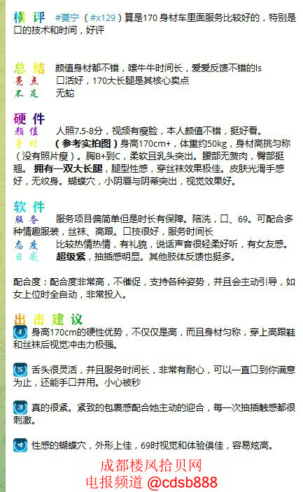 人照7.5-8分(频道中的视频有瘦脸,本人颜值不错),气质好。身高170+,身材匀称,熊B+(柔软水群,mimi很突出,性感),腰部无赘肉,臀部挺翘,大长腿大长腿,腿型性感。皮肤光滑手感好,无纹身。蝴蝶穴,小阴唇阴蒂突出,小穴紧,抽插感明显。