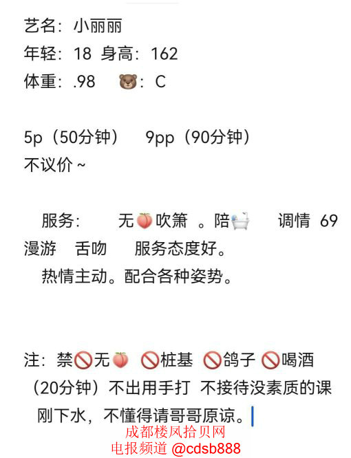驷马桥E0510小丽丽,18岁嫩妹,长得乖,圆脸,可爱,身材纤细,可舌吻,姿势配合,女友感,逼紧水多,胸C罩且手感好,叫声好听,500元一次