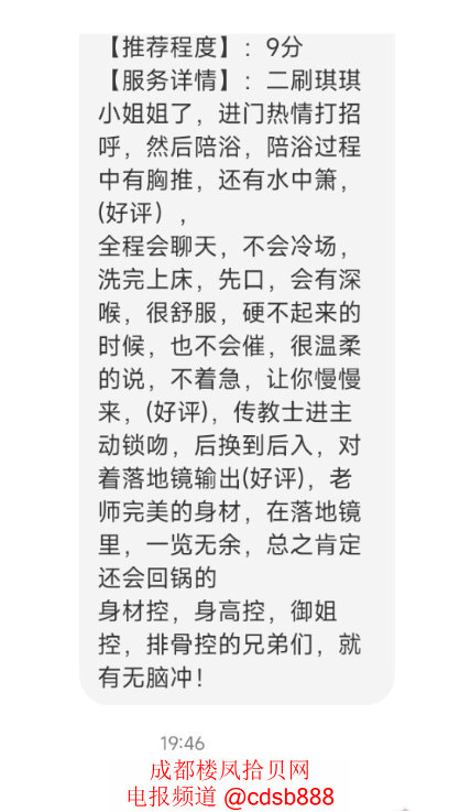 [武侯区] 心岛B0693琪琪酱,个子高(175cm),身材好,御姐型,腿玩年,口活好且有眼神交流,服务用心,配合度高,反馈好,有镜子,会聊天,不催人,温柔,主动舌吻,700元一次