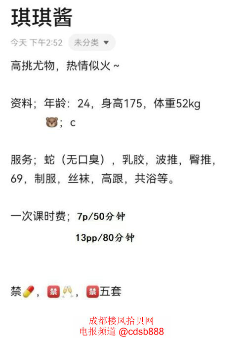 个子高,身材非常好,御姐型。服务项目少但是热情用心,配合度高,反馈好,各种姿势啪啪。