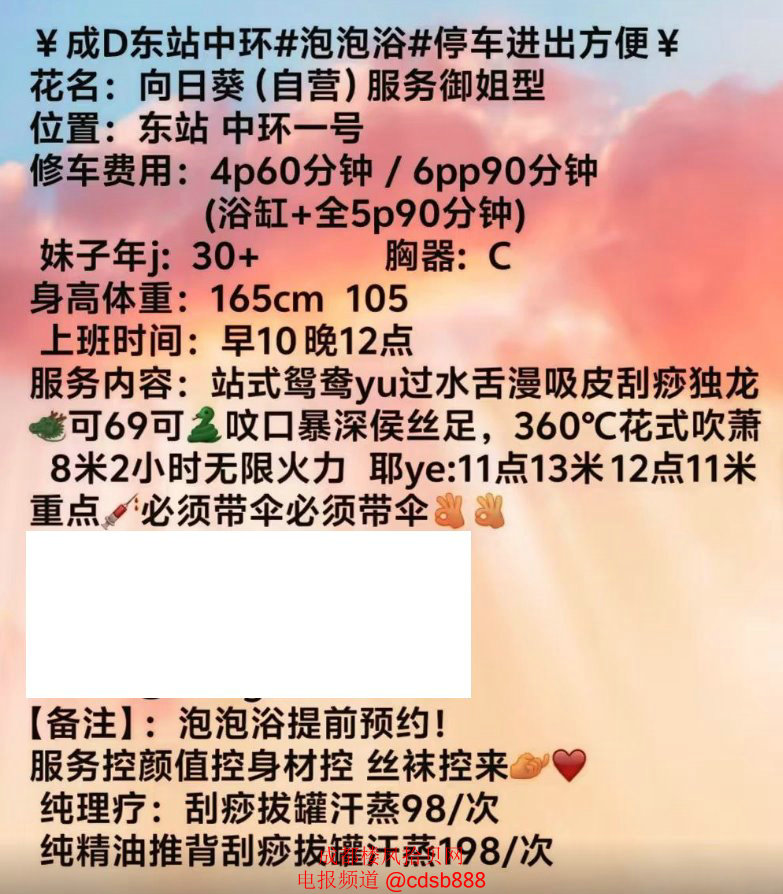 成都东站E0543向日葵,30多岁,特色是泡泡浴,还可以拔罐,刮痧,感觉挺有少妇韵味,可舌吻,有毒龙,400元一次,可包夜,不知道有没有狼友去过的?【人照8分,服务好且时间足,情趣衣服多,态度好,口活技术好,环境干净】