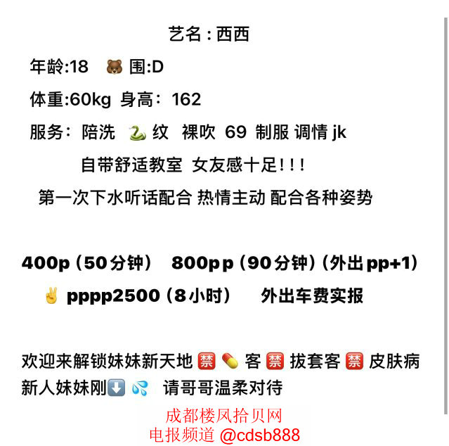 [武侯区] 金融城誉峰附近的B0706西西,20岁嫩妹,坦克类型,胸大C+罩,邻家小妹感,天然呆,日感不错,反馈一般,400元一次,可包夜,可上门