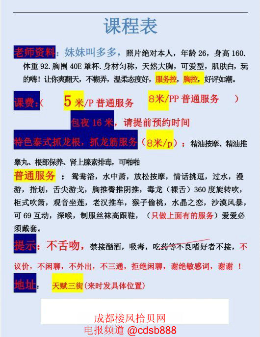 天府三街B0742多多,30多岁的轻熟少妇,人照一致,略坦,有肚子,皮肤白滑,胸大F罩(巨乳),身材娇小,前戏很足,抓龙筋和按摩手法很好,可精油按摩,有毒龙,每次都让我感觉通畅舒服,500元一次