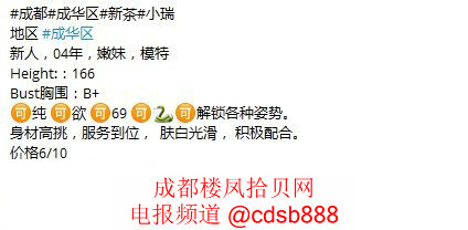 去成华区办事然后看群里上新了妹子,过去体验了一下,人照8合,长得还算高挑,胸型很好圆的,我没摸出来是不是科技胸,服务的话楼凤的服务就那样,日起来还是很配合,就是不愿意在上面久了,楼凤婆娘我怀疑就是懒,去的十个就是九个都是这样,在上面动几分钟看你不是容易出货的选手就让你来。去的时候妹子已经穿好小腿袜式的丝袜,还有那种公主裙的束腰,一把扯下来抓着小白兔输出,还是挺得劲的,主要是看新人尝个鲜,颜值身材我觉得过关了,服务有点水。然后B是包子B,中途换姿势的时候我掰开看了,里面粉的,另外说下建议大家出击还是搬开顺便看看,有些不给你看下面的说不定有问题,有些疱疹和皮肤病肉眼是可以看见的,因为我有点桩机,一般只日一次,第二次啥价我没问,这妹子开6的话,颜值身材及格,服务综合起来差点,开6不是非常硬,看个人。照片除了第1张,别的应该都是艺术照。